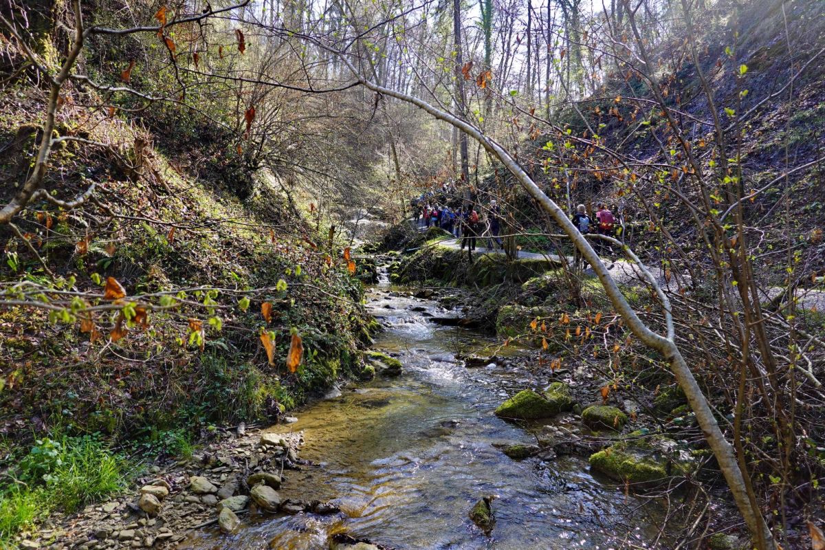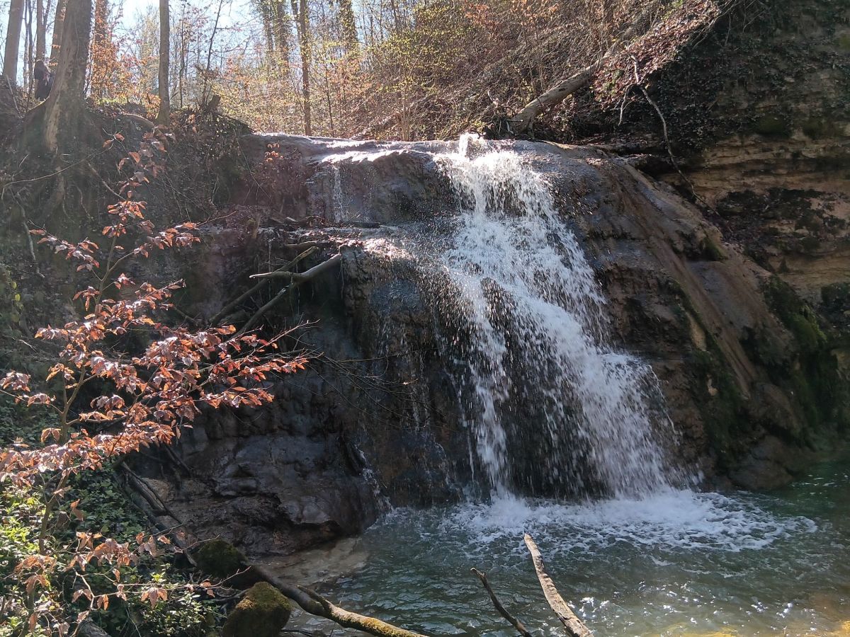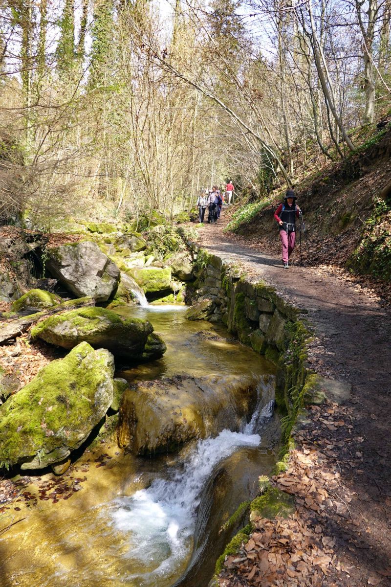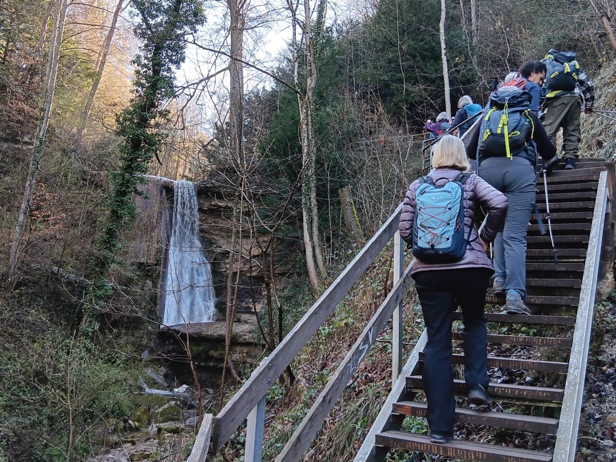 Anschliessend folgten wir dem Meilener Tobel zurück zur Bahnstation. Beide Tobel zeigten sich von ihrer schönsten Seite: Nach den Schneefällen der vorherigen Tage führten die Bäche viel Wasser, und die Wasserfälle rauschten eindrucksvoll. Zudem entdeckten wir bereits die ersten Frühlingsblumen im Wald.