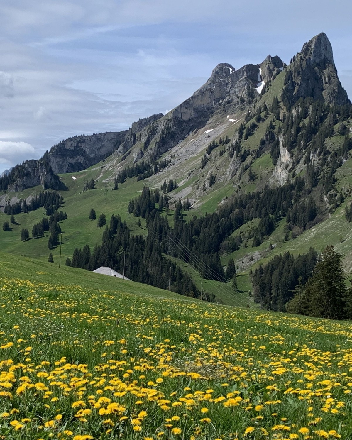 Riggisalp. Der Panoramaweg führt vorbei an den schroffen