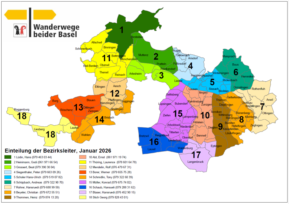 Aufbau und Unterhalt der Wanderweg-Signalisation werden von den Kantonen Basel-Landschaft und Basel-Stadt abgegolten, doch steckt auch bei der Signalisation immer noch eine gehörige Portion Freiwilligenarbeit dahinter.